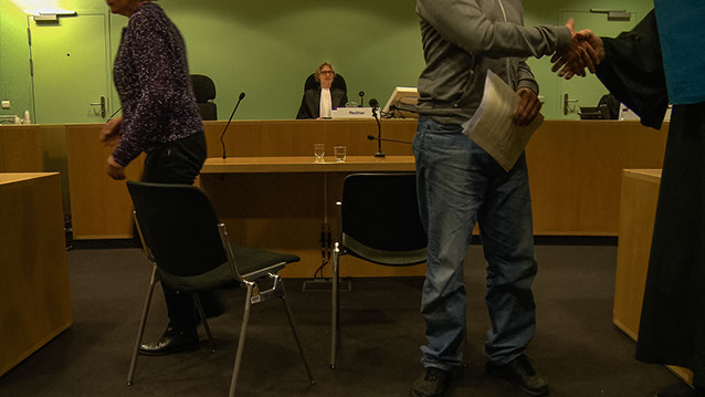 These are not court cases surrounded by flamboyant lawyers, tv camera’s, or a packed public gallery. On the contrary. Glamour is absent here, in the small court room of the justice of the peace.